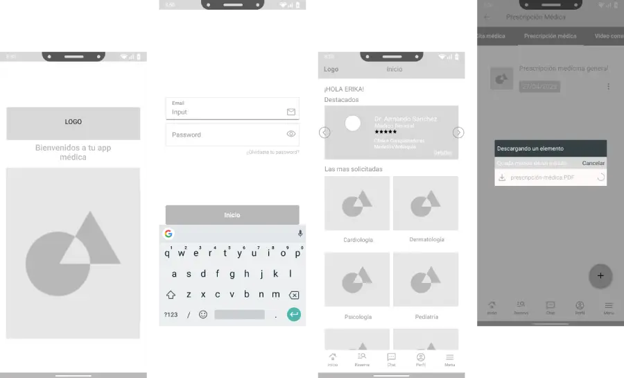 managing medical appointments. Key UX/UI features include intuitive navigation,